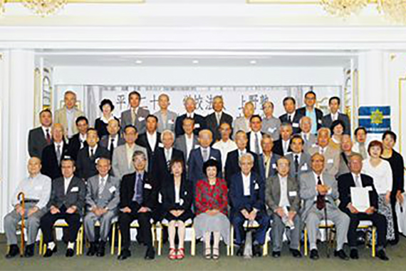 総会後、東京高校同窓会副会長矢沢秀一氏、事務局の進藤健氏をお迎えして、懇親会が行なわれた。出席総数107名。最高齢は17期83歳の村松濱代・六部峻・岩沢俊雄・長山幸作の諸先輩方。最低年齢は83期18歳の高野清基・松浦史典・今井隆治・高森里枝・要田美波・鈴木綾乃君達6名。その年齢差何と、65歳。大勢の中で、皆の人気を集めたのが、81期川代夕佳君(21歳)に抱っこされた太智(たいち) 君(1歳)である。元気な声が会場を圧していたし、人見知りしない可愛い笑顔に、出席者が刺激され、皆高校生の笑顔になっていた。(総務部)