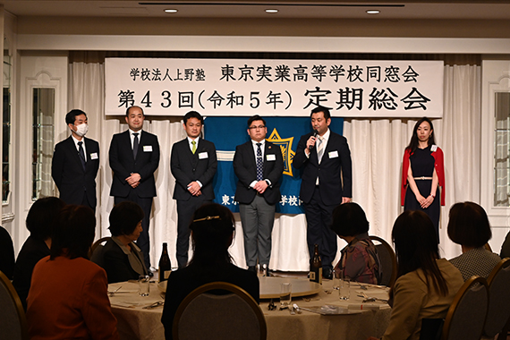 議事終了後、改選役員の紹介に次いで、出席された卒業後5年以内(~98期)の幹事及び会員らが紹介され、それぞれより自己紹介を兼ねて挨拶していただきました。続いて、令和4年度2年生(現3年生)の東実スカラシップ(学業、資格・技能、スポーツ・文化・特別)の認定授与式を行う予定でしたが、大型の台風2号の影響で学校が臨時休校となったため、授与式は取り止めとなり、小畑雅一副会長(特命担当部長)より全校の認定奨学生の給付人数などについて報告していただき、式次第がすべて終了し閉会となりました。なお、第6号議案では本年度非改選期であるため、下表の4名の改選が行われ、全員が選任され、それぞれ就任いたしました。